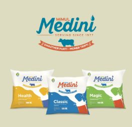 The Midnapore Co-operative Milk Producers Union Ltd. has been marketing milk under the brand name ‘MIMUL’ which was derived from the name of the cooperative. When the cooperative felt the need for creating a brand identity for its dairy products, support was extended under the Marketing Scheme in creation of the brand identity – “Medini”.