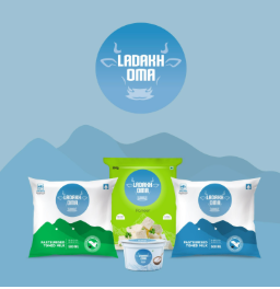 The Ladakh UT Dairy Cooperative Federation was founded in October 2023 to empower rural farmers and supply high-quality milk and dairy products in Leh-Ladakh. Given the region’s harsh winters and reliance on long-shelf-life milk from other parts of the country, the establishment of this dairy will be crucial to ensuring year-round access to fresh milk and dairy products. As a new entity, the dairy required a strong brand identity, leading to the creation of “Ladakh Oma” under the Marketing Scheme.